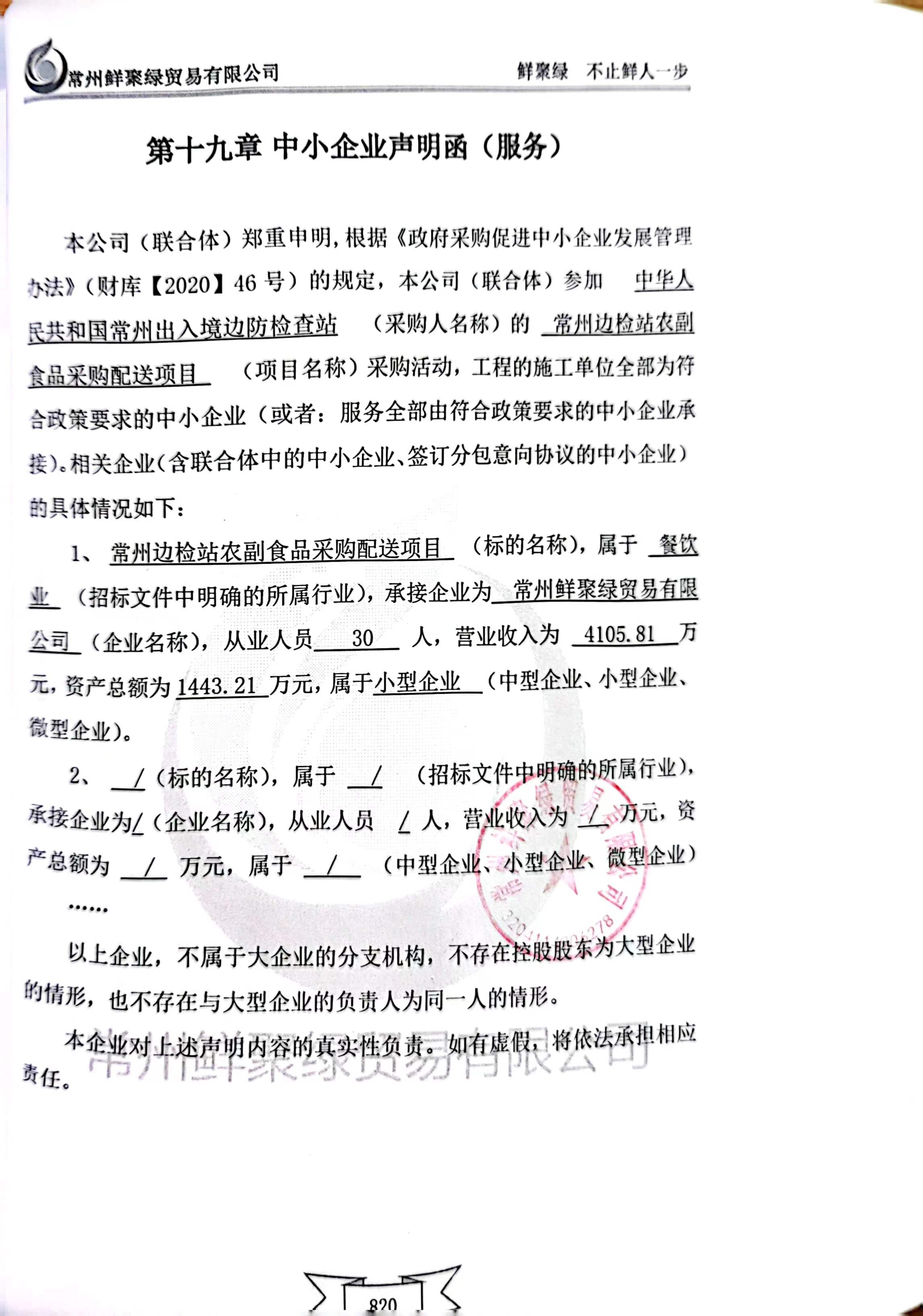 二、項目名稱(chēng):常州邊檢站農副食品采購配送項目